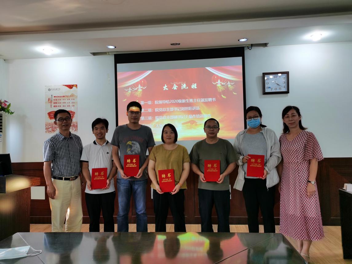 首先,由党总支书记刘世旺、副书记于晶为9位新生班主任颁发班主任聘书。接着由刘书记发言,他强调班主任应该要了解班主任工作的特性和责任,要求班主任要带领好班级,引领好员工,同时寄语院员工工作越来越好,再创新高。