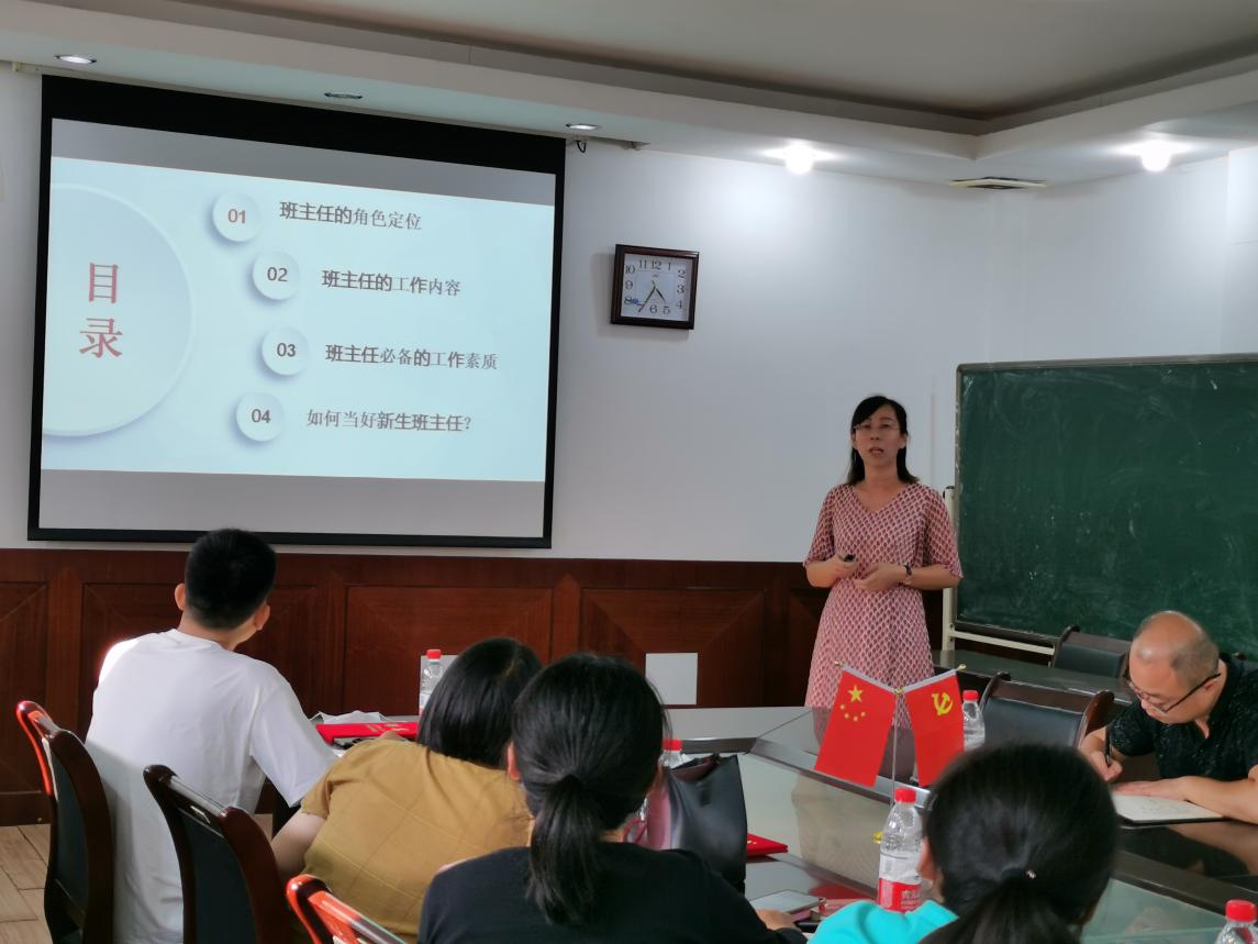 最后由党总支副书记于晶为新生班主任做培训工作。于书记从班主任的定位、班主任的工作内容、班主任应具备的素质、如何做好班主任等内容进行了详细介绍,强调新生入校第一个月为重要时期,班主任要利用好这一个月的时间对员工进行了解,选配好班级干部以便尽快形成良好的班风、学风。