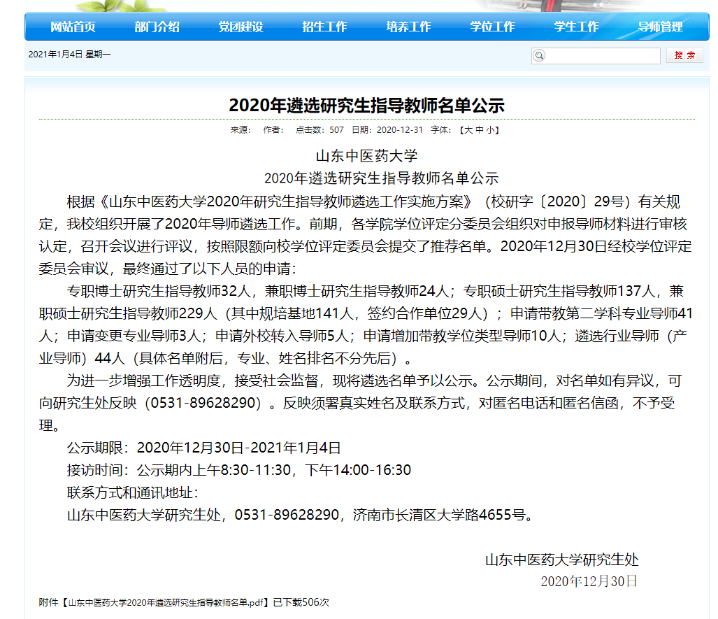 公司四名教师入选山东中医药大学兼职硕士生导师