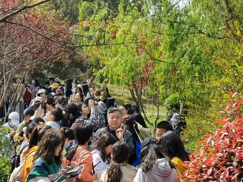 (通讯员 董洪进)春意盎然,鸟语花香。项俊教授如期为同学们在遗爱湖进行了现场教学,妙趣横生的用植物实体给员工讲解了书本上形态特征的理论知识,不断点燃大家的欢声笑语,寓教于乐,反响强烈。参加学习的主要有2020级生物科学和植物科学的大一新生,也有慕名而来的高年级员工,同行的老师有董洪进、余姣君、彭倩等。